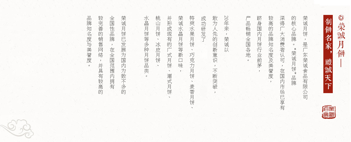 以團(tuán)圓為餡,以人生百年制酥,用中國人的思念焙烤。榮誠月餅--默默守護(hù)中秋文化