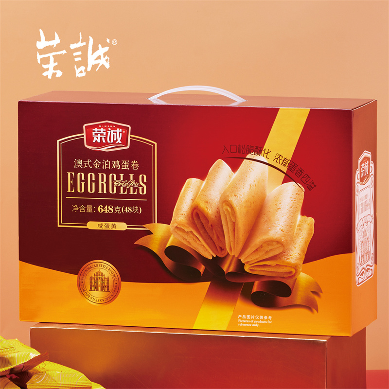 【編 碼】 CGZ2102 【條形碼】 6925755534423 【尺 寸】 37x11x24cm 【凈含量】 648g 【規(guī) 格】 648gx8盒/箱 【內(nèi)容物】 13.5g澳式金泊雞蛋卷(咸蛋黃)x48