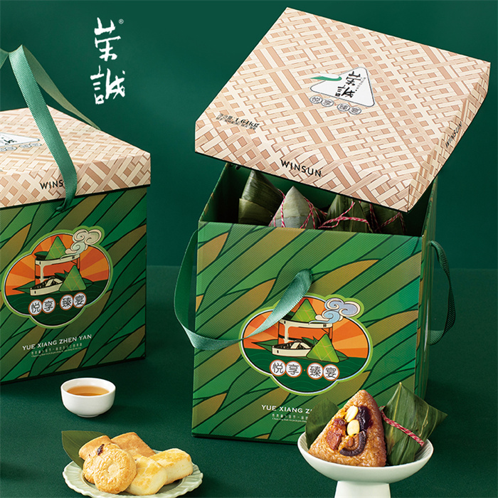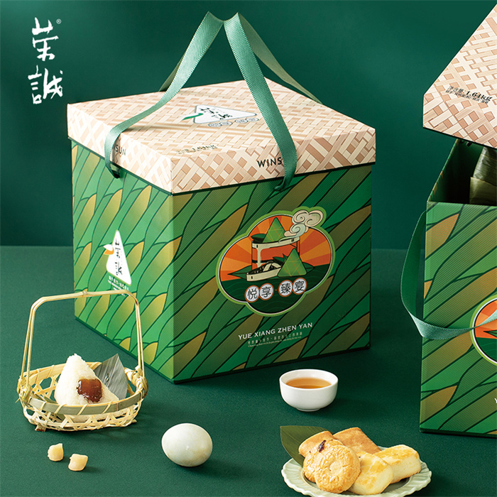 【編 碼】 HZZ2406 【條形碼】 6925755536489 【尺 寸】 25x25x25.2cm 【凈含量】 1.64kg 【規(guī) 格】 1.64kgx4盒/箱 【內(nèi)容物】  200g潮汕雙烹粽(2粒),200g板栗肉粽(2粒),200g豆沙粽(2粒),200g蜜棗粽(2粒),360g咸鴨蛋(熟)(6粒),100g香焙杏仁酥(10塊),100g香焙蔓越莓酥(10塊),100g澳式金泊雞蛋卷(芝麻原味)(8塊),180g香妃鳳梨酥(6塊)