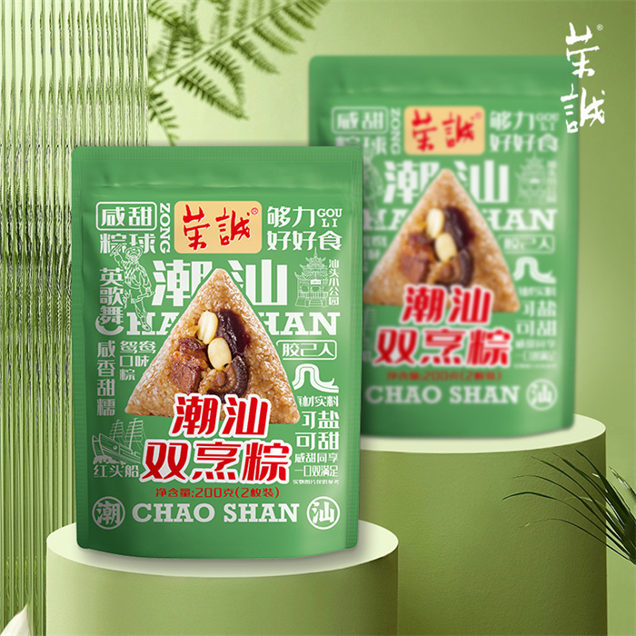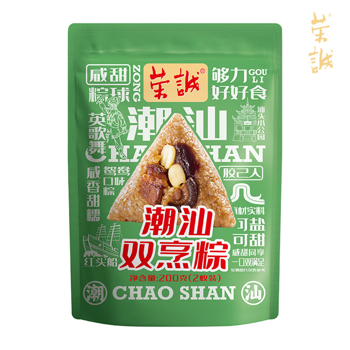 【編 碼】 HZD2410 【條形碼】 6925755536533 【尺 寸】 17.5x24.7cm 【凈含量】 200g 【規(guī) 格】 200gx20袋/箱 【內(nèi)容物】 100g潮汕雙烹粽x2