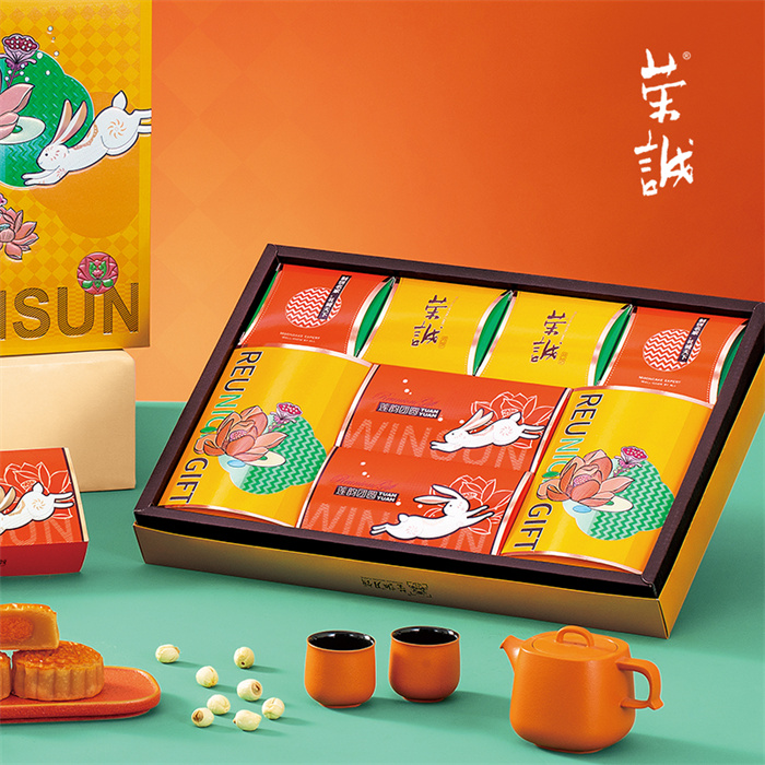 【編 碼】 YBZ2402 【條形碼】 6925755562419 【尺 寸】 39x27x5.2cm 【凈含量】 600g 【規(guī) 格】 600gx10盒/箱 【內(nèi)容物】  60g蛋黃白蓮蓉月餅x2,80g豆蓉檸檬奶酪月餅x2,80g清爽哈密瓜味月餅x2,80g豆蓉椰香月餅x2