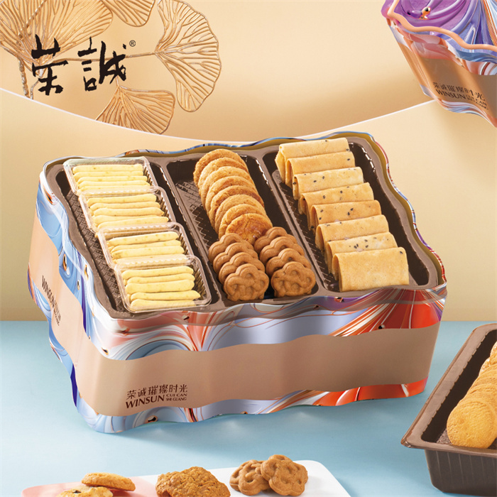 30g香妃鳳梨酥x3,15g燕麥拿鐵方塊脆x6,10g香焙蔓越莓酥x12,8g原味奶油曲奇x12,10g香焙杏仁酥x8,8g迷你黑麥紅茶酥x8,13.5g澳式金泊雞蛋卷(芝麻原味)x8,12g蔥香卡拉棒x8